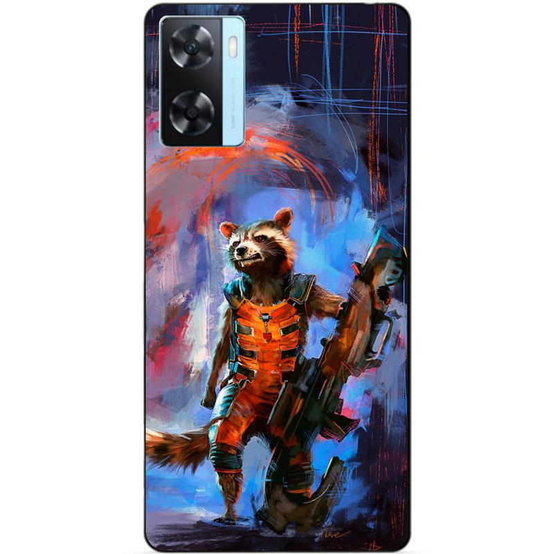 Силиконовый бампер чехол для oppo a57s с рисунком реактивный енот стражи галактики