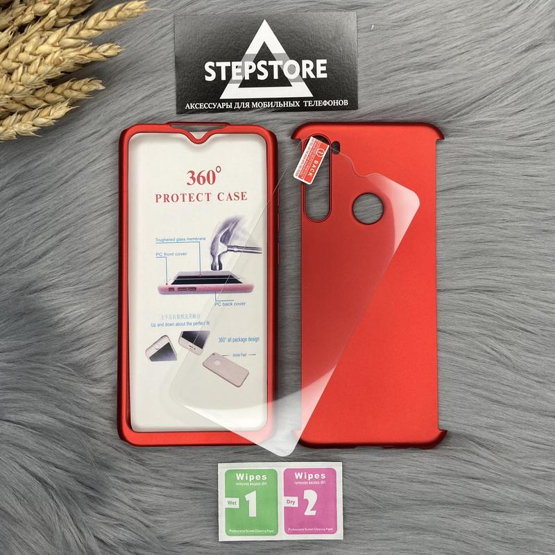 Чехол бампер 360 для xiaomi redmi note 8 противоударный защитное стекло в комплекте красны...