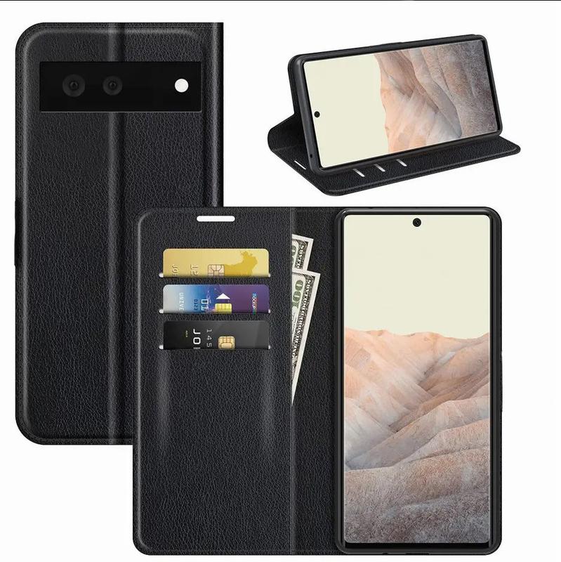 Чехол-книга из искусственной кожи для google pixel 6 (черный)