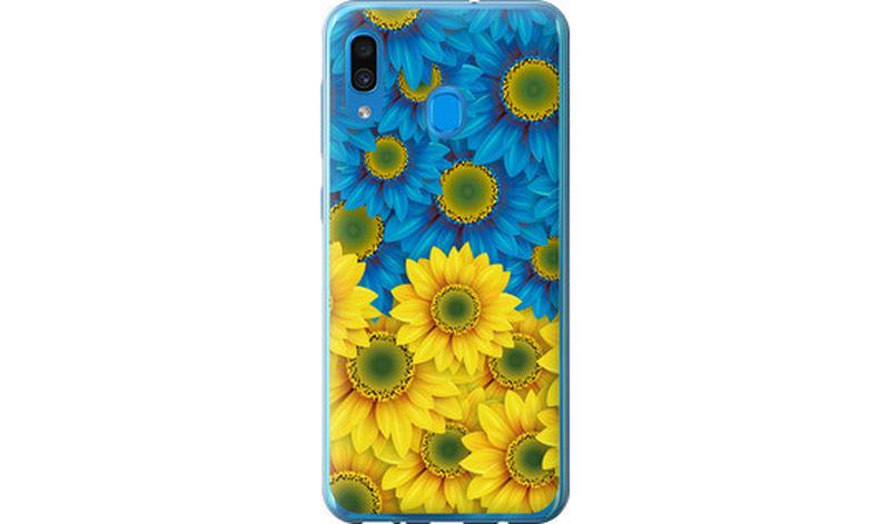 Чехол на samsung galaxy a30 2019 a305f жёлто-голубые цветы из пластика fch_0006773