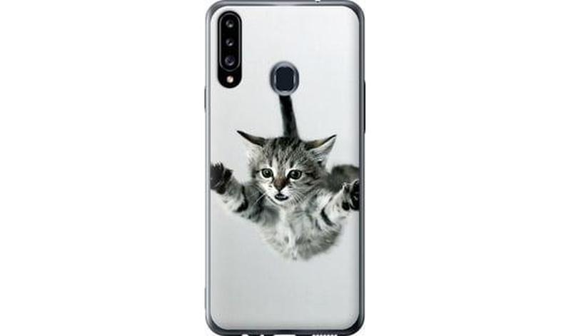 Чехол на samsung galaxy a20s a207f летящий котёнок из пластика fch_0012238