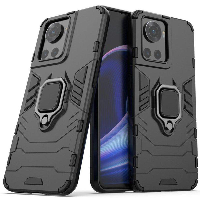 Чехол fiji ring для oneplus 10r бронированный бампер с кольцом подставкой черный