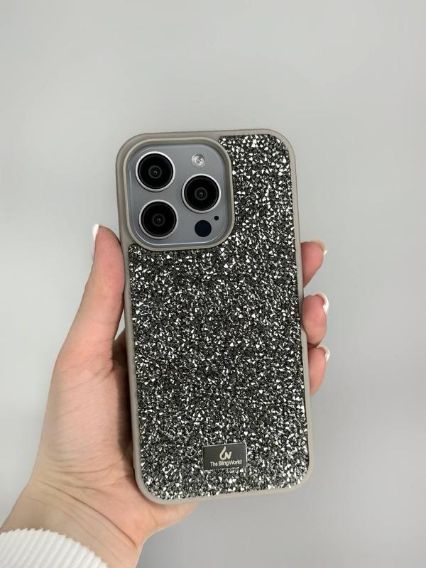 Красивые Чехлы с камушками The Bling World для 700 iPhone Модельный ряд: iPhone 11, 12/12 pro, 12 pro max, 13/14, 13 pro, 13 Pro Max, 14 pro, 14 pro max, 15, 15 pro, 15 pro max. Цвета: черный, серебро, серый, голубой, розовый, золотой материал - акрил + камни, внутри акрил. Бирка металлические Swarovski Камни не колятся, чехол приятно держать в руках, качественно изготовлен, высокий бортик над камерой, • В бумажной упаковке.