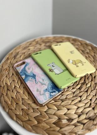3 чохли на iPhone 8 Plus . Зелений та жовтий - нові. З абстрактним малюнком - був у використанні. Стан - хороший .