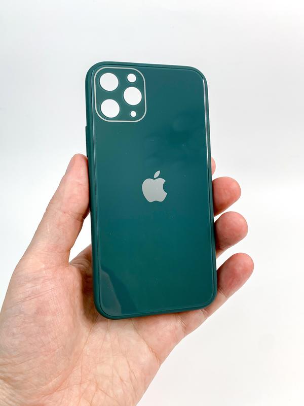 Чохол для iPhone 11 Pro Чехол из толстого полиуретана + стеклянная тыльная панель Закрытый низ Цвет: зеленый Распродажа остатков чехлов. Чехлы все новые Все представленные фото живые, сделанные нами