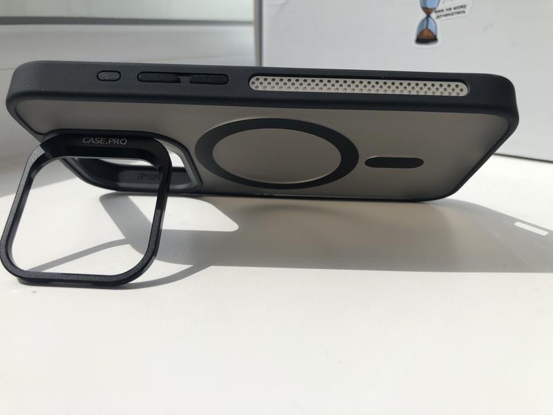 Магнитный противоударный чехол с беспроводной зарядкой MagSafe и подставкой и защитным стеклом на камеру