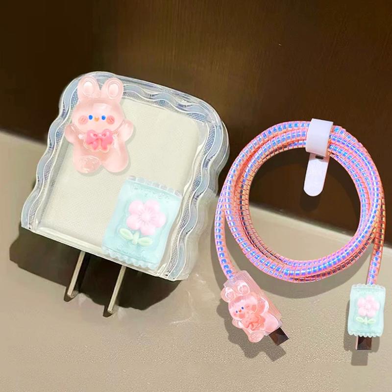 Квітковий чохол для Apple 18 Вт/20 Вт, захисний чохол для зарядного пристрою підходить для iPhone 15 14 13 12 11, захисний чохол для кабелю передавання даних