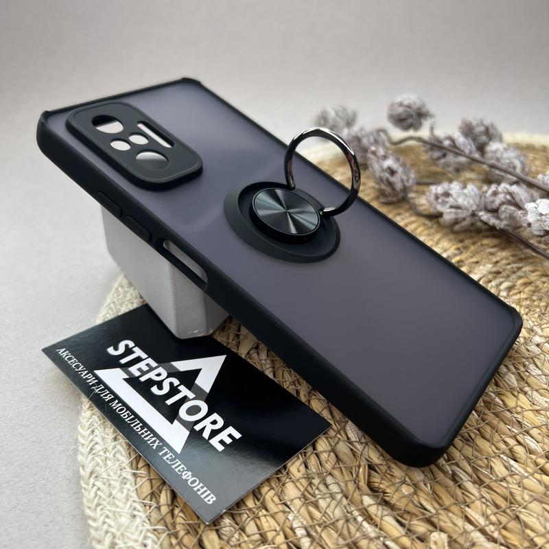 Чехол для xiaomi redmi note 10 pro матовый с кольцом-держателем защитой камеры противоудар...