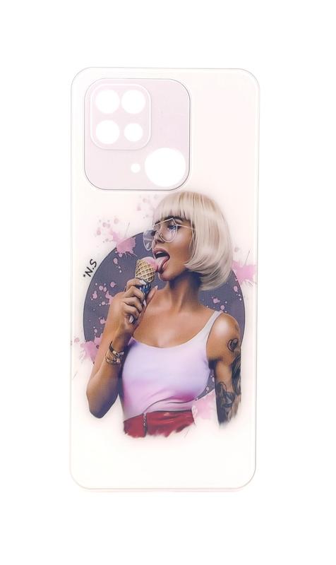 Чехол glass case для xiaomi redmi 10c бампер стеклянный белый с рисунком девушка