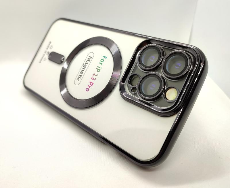 Силиконовый чехол, MAGSAFE FULL CAMERA бампер для iPhone 13 Pro. На фото Вы видите то, что получите. Фото живые. Чехол оборудован MagSafe кольцом, совместимым с беспроводным зарядным устройством MagSafe для быстрой и легкой зарядки. - изготовлен из силикона средней жесткости; - полноценная защита каждой камеры телефона (защитные линзы на камере, при необходимости можно снять); - имеет небольшие размеры; - полная защита камеры; - не конфликтует с защитным стеклом; - закрывает телефон с четырех сторон; - плотная посадка на телефон.