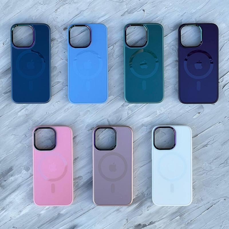 Чехол для iPhone от 11 до 14 pro max TPU+PC AG-Case MagSafe Чехол для iPhone TPU+PC AG-Case MagSafe - это надежный аксессуар высочайшего качества, разработанный для усиленной защиты смартфона с полной сохранностью его функциональности. Модель реализована в оригинальном дизайне, предлагается в широком цветовом разнообразии, что позволит каждому персонализировать гаджет в соответствии со своим уникальным способом, выбрав один или сразу несколько вариантов. Бампер и задняя панель чехла обладают приятной на ощупь матовой поверхностью и лаконично сочетаются с цветными, хромированными деталями: рамкой основной камеры и кнопками. Аксессуар изготовлен из комбинации противоударного поликарбоната и термопластического полиуретана. Благодаря данным материалам, он одновременно обладает достаточной эластичностью и жесткостью для плотного облегания гаджета и защиты его корпуса от сколов даже при сильных ударах. Полная совместимость чехла с технологией MagSafe гарантирует точное позиционирование зарядного устройства и стабильный процесс зарядки, надежное крепление соответствующих картхолдеров и внешних аккумуляторов. Конструкция аксессуара не ограничивает доступ к разъемам смартфона и работе его кнопок. Рамка по периметру выреза для модуля основной камеры немного приподнята над ним, что обеспечивает дополнительную защиту.