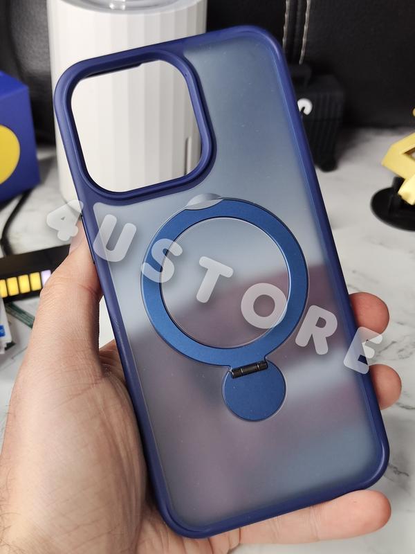 Чехол matt guard ring with magsafe на iphone 15 pro max с кольцом подставкой и магсейф син...