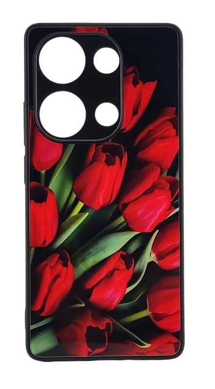 Чехол glass case для poco m6 pro стеклянный бампер рисунок цветы тюльпаны
