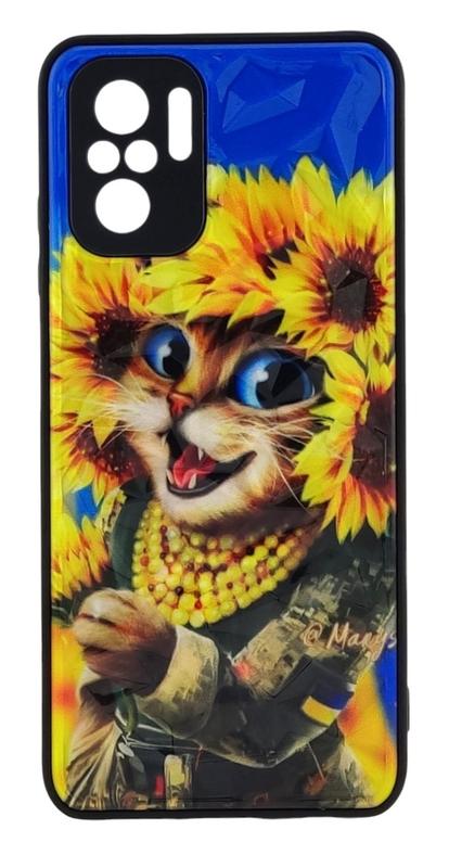 Чехол prisma для poco m5s стеклянный розовый бампер с рисунком кот подсолнухи