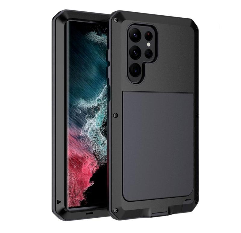 Противоударный бронированный чехол Primo Doom Armor для смартфона Samsung Galaxy S22 Ultra (SM-S908) Внимание! Конструкция экрана данного телефона не позволяет использовать данный чехол совместно с защитным стеклом. Поэтому, просим обратить внимание - чехол не имеет защитного стекла на верхней рамке. Чехол максимально защитит ваш телефон в экстремальных условиях. Материалом для чехла послужил качественный легкий сплав алюминия. Все разъемы полностью доступны для использования, что очень удобно. Сам чехол имеет стильный вид, поэтому в этом виде чехла Doom Armor объединились два важных компонента: защита и стиль. Итак, данный кейс имеет многокомпонентную конструкцию: металлический каркас, резиновый кейс, винтики для крепления. В комплекте дополнительно идет шестигранный ключ для их вкручивания. Закрепить Samsung Galaxy S22 Ultra в предлагаемом аксессуаре не составит сложности: изначально, при помощи специальной отвертки-ключа, необходимо выкрутить все винтики по контуру металлического «скелета», далее достать резиновый кейс, который нужно надеть на смартфон, после чего вложить его в нижний каркас, накрыть верхней рамкой и завинтить конструкцию. Все слоты и разъемы закрыты мощными заглушками. Прочный корпус данного чехла предотвратит повреждение Вашего Samsung Galaxy S22 Ultra (SM-S908) при возможных падениях и ударах. Не рекомендуется погружать смартфон в воду, ведь стоит помнить, что этот чехол не подводный бокс!
