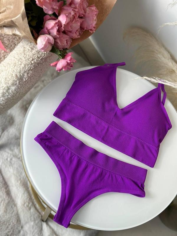 DO2063 (фіолет) ♥️Найзручніші безшовні комплекти нижньої білизни ♥️ Маст хев у твоєму гардеробі! ♥️ Спробувавши один раз, ти вже не захочеш щось інше😍 ✔️Преміум якість! Білизна, яка практично не відчувається на тілі! ✔️Бережна підтримка грудей, чашки зйомні! ✔️Комплекти ідеально підходять для щоденного носіння, для спорту. ✔️розміри: М: груди 83-87, бедра 86-94 L: груди 88-92, бедра 93-98 XL: груди 93-97, бедра 99-105 2XL: груди 98-104, бедра 106-112