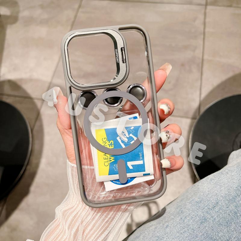 Чехол metal stand with magsafe на iphone 12 pro max с линзами на камеру с подставкой с маг...