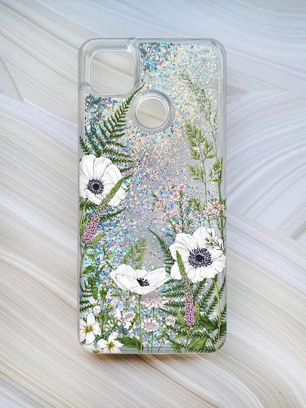 Чехол с плавающими блестками на xiaomi redmi 9c / 10a серебро :: цветы полевые (принт 363)