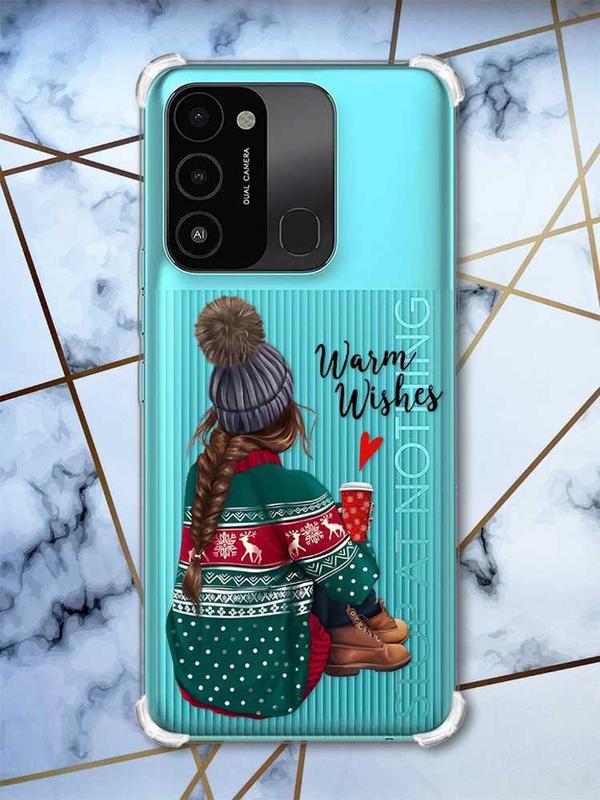 Чехол с утолщенными углами для tecno spark go 2022 :: девушка с кофе (принт 136)