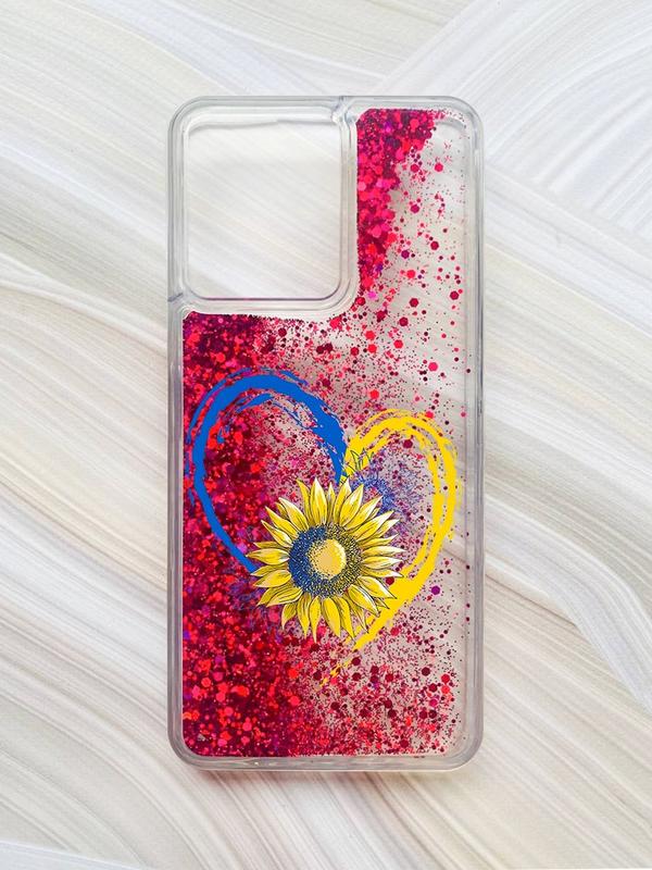 Чехол с плавающими блестками на xiaomi redmi 13c / poco c65 розовый :: сердце и подсолнух...
