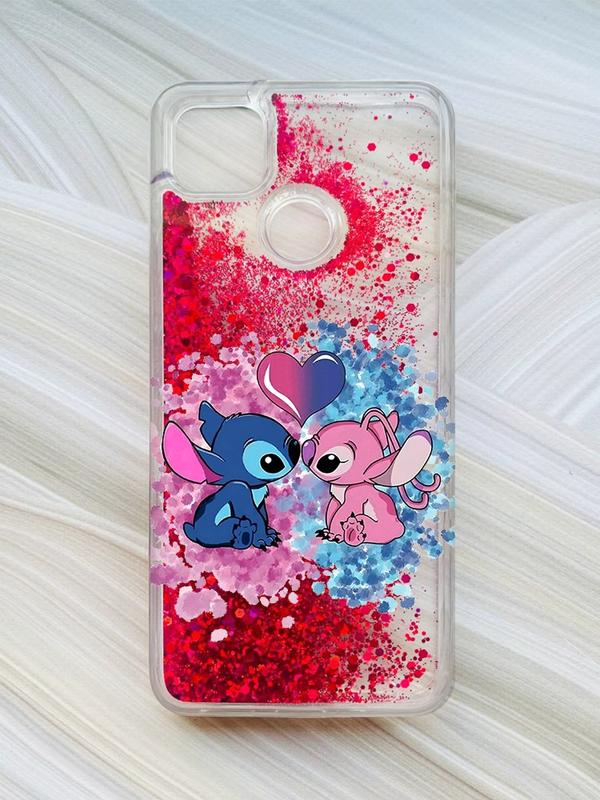 Чехол с плавающими блестками на xiaomi redmi 9c / 10a розовый стич и ангел (принт 391)