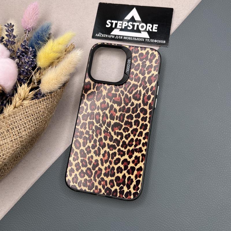 Чехол для iphone 13 pro max с леопардовым принтом матовый кнопки под металл противоударный...