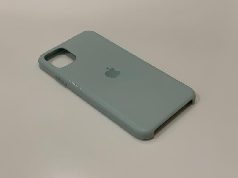 Чехол для iPhone 11 Pro Max приятного мятного цвета. Силикон, внутри более мягкий. У кнопок громкости разорван, на последнем фото видно.