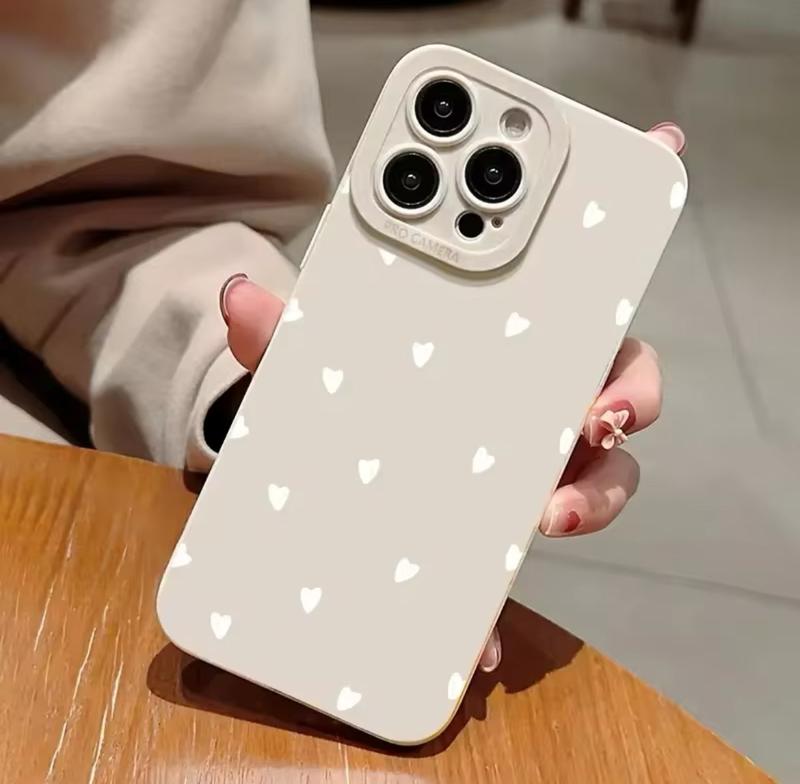 Силиконовый чехол в молочном цвете с белыми сердечками На iPhone 12 pro Новый!