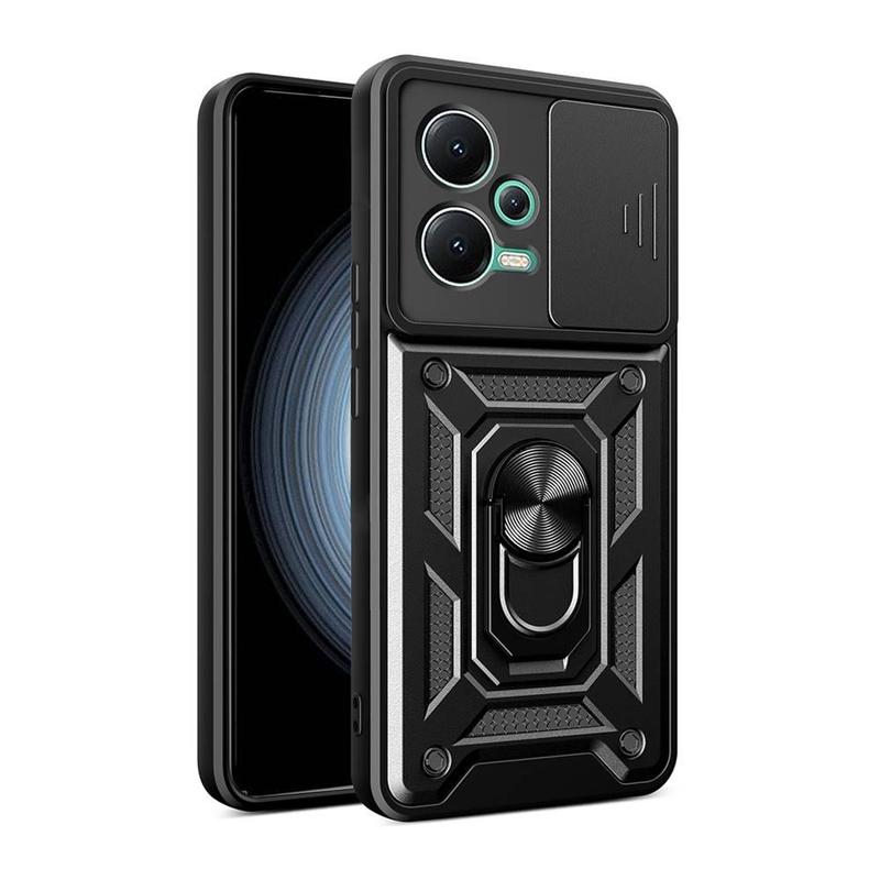 Преимущества и особенности чехла Armor Guard Shield: - Небольшие толщина и вес – сохраняет привычные размеры и массу устройства. - Приятная на ощупь поверхность, которая не оставляет на себе следов от пальцев. - Прочная композитная конструкция из поликарбоната (PC) и термопластичного полиуретана (TPU). - Соответствие армейскому стандарту защиты: гарантирует защиту корпуса от сколов и царапин даже при падениях. - Подвижная шторка для защиты модуля основной камеры, а также индивидуальные вырезы для каждой из задних камер и вспышки. - Удобные кнопки и точные вырезы для разъёмов и других функциональных элементов устройства. - Металлическая панель с текстурированной поверхностью для простой установки гаджета на магнитный держатель. - Складное, поворотное кольцо, которое поможет легко и безопасно держать смартфон одной рукой и расположить его в горизонтальном положении, например, на столе для просмотра видео.