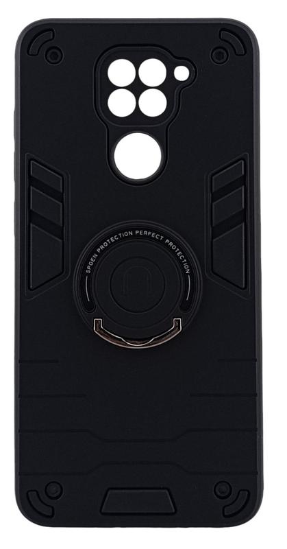 Противоударный чехол spgen ring для xiaomi redmi note 9 бампер с подставкой черный