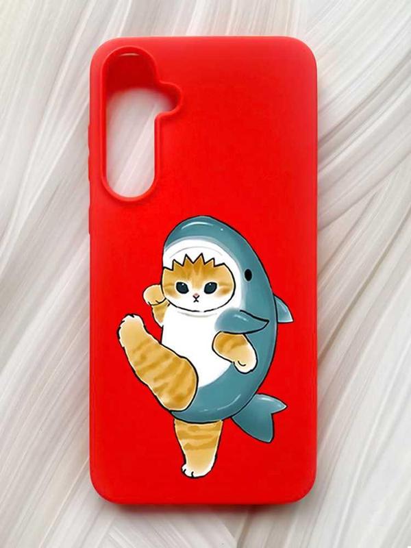 Матовый красный чехол на samsung galaxy a55 (a556) котенок акула (принт 380)