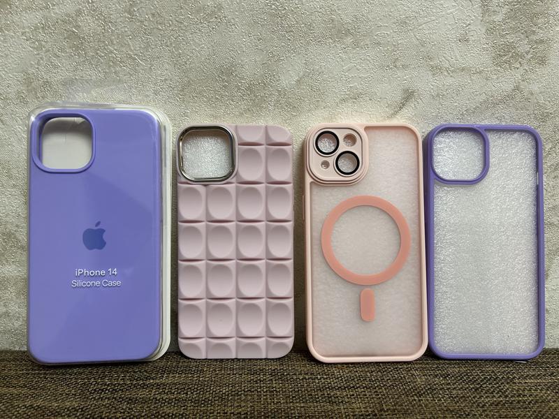 Чехлы полностью новые, в использовании не были. Фиолетовый под оригинальный айфоновский 150 Другие по 100