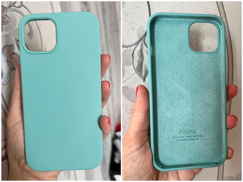 Силиконовый чехол на Айфон 13 Бирюзовый цвет Стан идеален, без царапин, абсолютно чистый Яблоко имеет только очертания, без цвета
