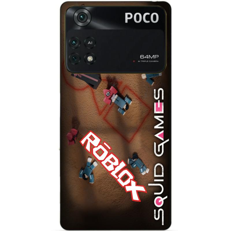 Силиконовый бампер чехол для xiaomi poco m4 pro 4g с рисунком roblox игра в кальмара