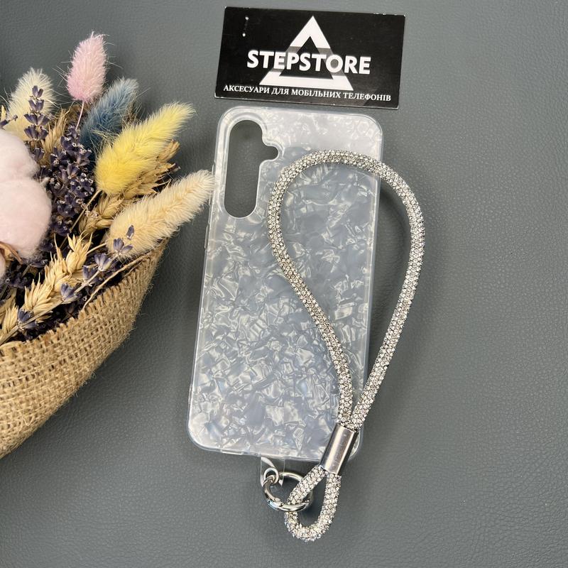 Чехол для samsung s23 fe с ремешком на руку с камушками глянцевый переливается противоудар...