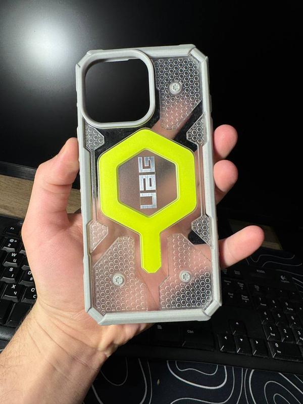 UAG iPhone 14/15/16 pro max! На моделі 14 pro max, 15 pro max, 16 pro max Сам із таким ходжу, якість супер! Хороший подарунок хлопцеві, і військовим теж, так як чохол протиударний і міцний. Усім мирного небо над головою!