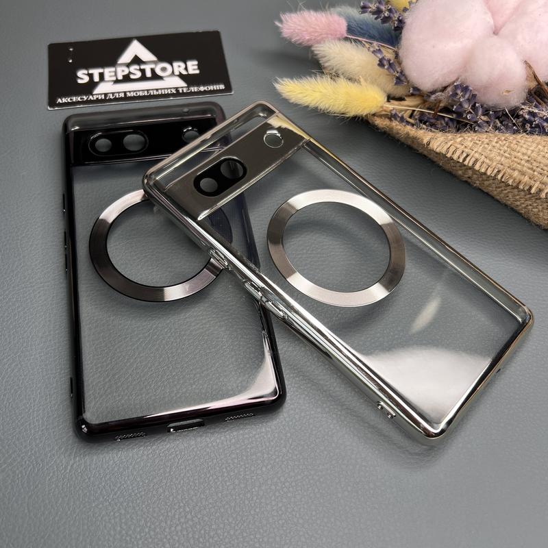 Чехол для google pixel 7a с magsafe прозрачный хромирован ободок противоударный магнитный...