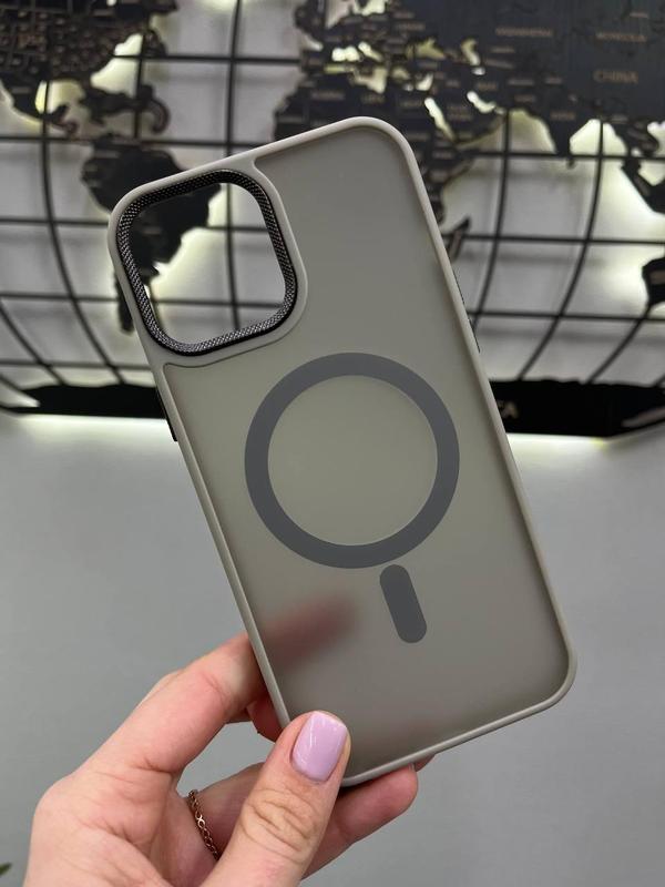 Чехол-накладка Magnetic Color with Magsafe iPhone 12 Pro Max,Чехол прозрачный с магсейфом для телефона Айфон 12 Про Макс (Цвет: Серый) Чехлом-накладкой - идеальным сочетанием стиля и защиты для вашего телефона! Чехол Magnetic Color with Magsafe - это надежный аксессуар высочайшего качества, разработанный для усиленной защиты смартфона с полной сохранностью его функциональности. Модель реализована в оригинальном дизайне, предлагается в широком цветовом разнообразии, что предоставит возможность каждому персонализировать гаджет в соответствии со своим уникальным образом, выбрав один или сразу несколько вариантов. Бампер и задняя панель чехла имеют приятную на ощупь матовую поверхность и лаконично сочетаются с его цветными, хромированными деталями: рамкой основной камеры и кнопками. Аксессуар изготовлен из комбинации противоударного поликарбоната и термопластичного полиуретана. Благодаря данным материалам, он одновременно обладает достаточной эластичностью и жесткостью для плотного облегания гаджета и защиты его корпуса от сколов даже при сильных ударах. Полная совместимость чехла с технологией MagSafe гарантирует точное позиционирование зарядного устройства и стабильный процесс зарядки, надежное крепление соответствующих картхолдеров и внешних аккумуляторов. Конструкция аксессуара не ограничивает доступ к разъемам смартфона и работу его кнопок. Рамка по периметру выреза для модуля основной камеры слегка приподнята над ним, что обеспечивает дополнительную защиту.