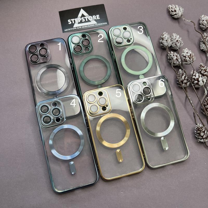 Чехол бампер для iphone 13 pro с magsafe линзы на камеру прозрачный хромирован ободок прот...