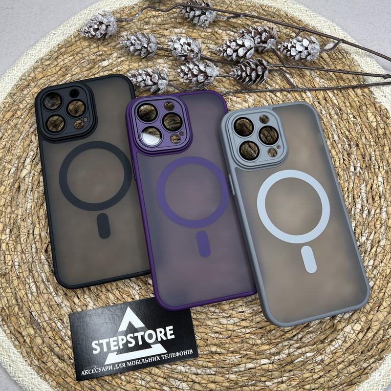 Чохол для iphone 14 pro max з лінзами на камеру magsafe матовий з кольоровим обідком прозо...
