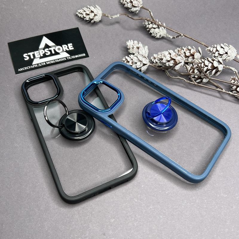 Чехол для iphone 11 с кольцом-держателем прозрачный противоударный метал кнопки подставка