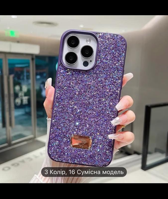 Фиолетовый чехол на айфон 12 с камушками