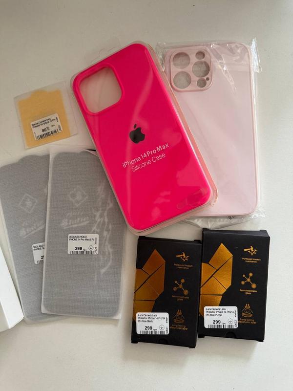 Набор для iPhone 14 pro max Чехлы розового цвета 2 шт Защитное стекло для камеры 2 шт (purple+black) Защитное стекло для экрана 2 шт ВИГІДНА ЦІНА