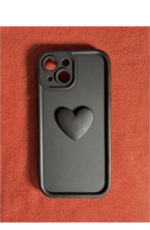Чехол для телефона iPhone 15 новый силиконовый с 3D сердцем. Цвет - черный.