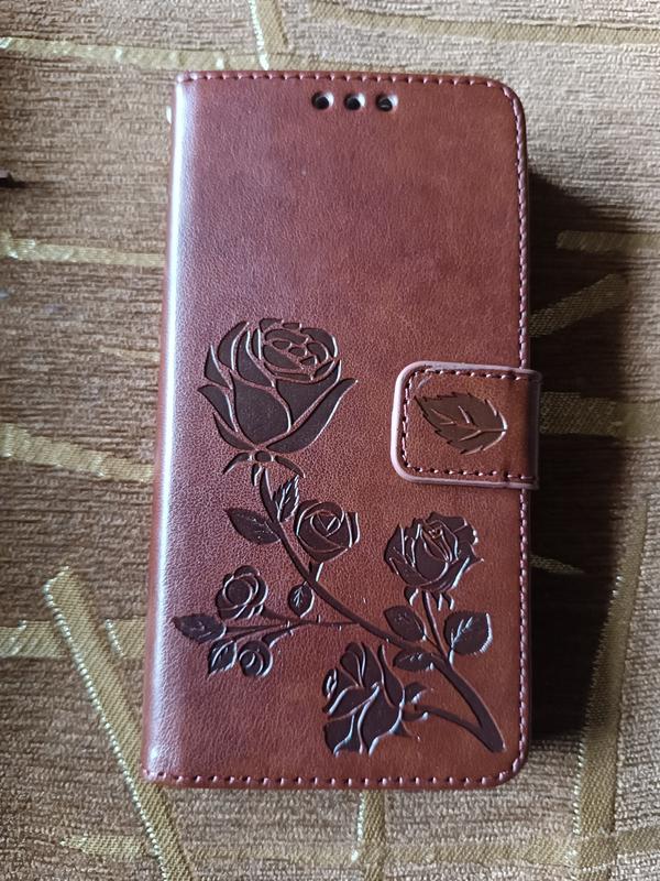 Надежная защита для вашего телефона. Красивый цвет и тиснение в виде розы, ремешок, застежка на магните и отделение для карточек делают этот чехол мега удобным и симпатичным аксессуаром.