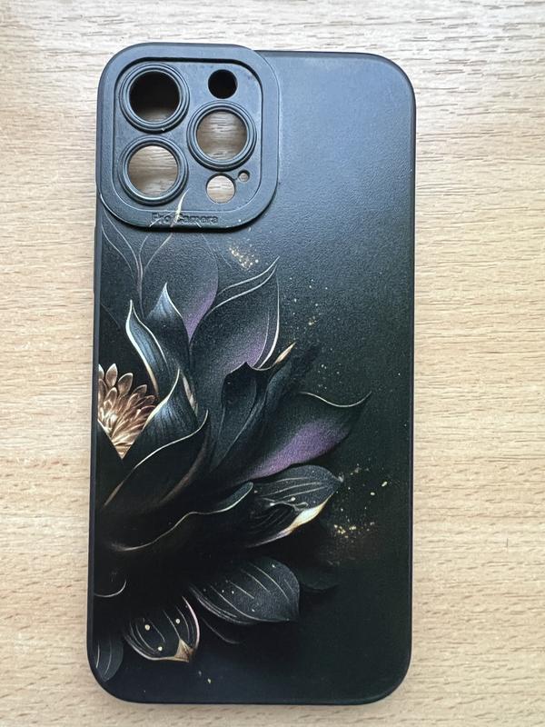 чохол на iPhone 13 pro max з чорним візерунком у стилі лотоса, стан без ньюансів