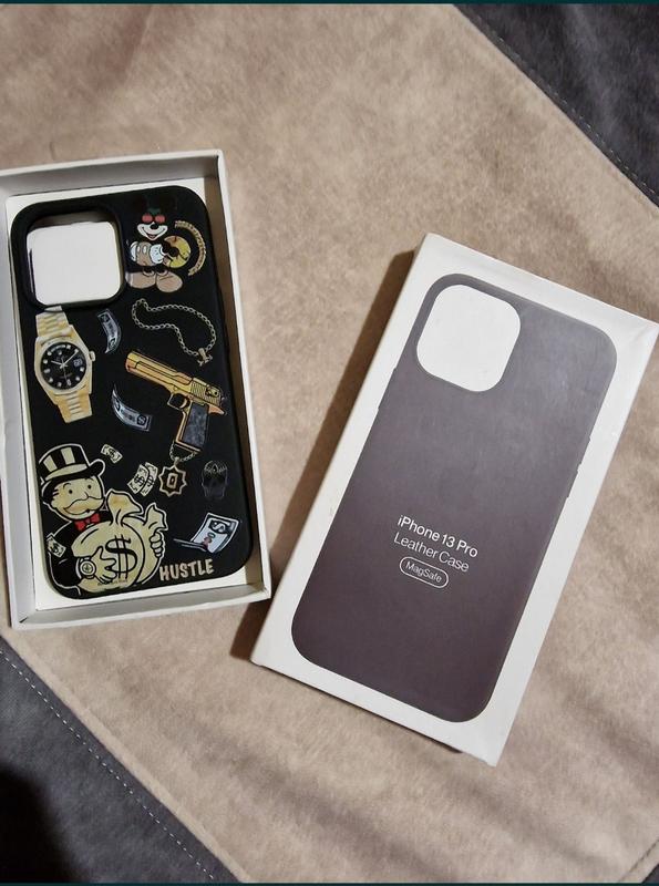 чехол необычный чёрный на айфон 13про в коробке.