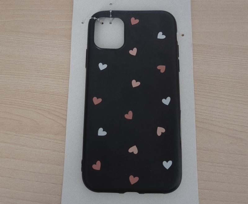 Новый силиконовый чехол на телефон iphone 11 XR Черный с милыми сердечками.🩷🤎🤍 С напылением софт-тач. Очень приятный на ощупь ✨😌