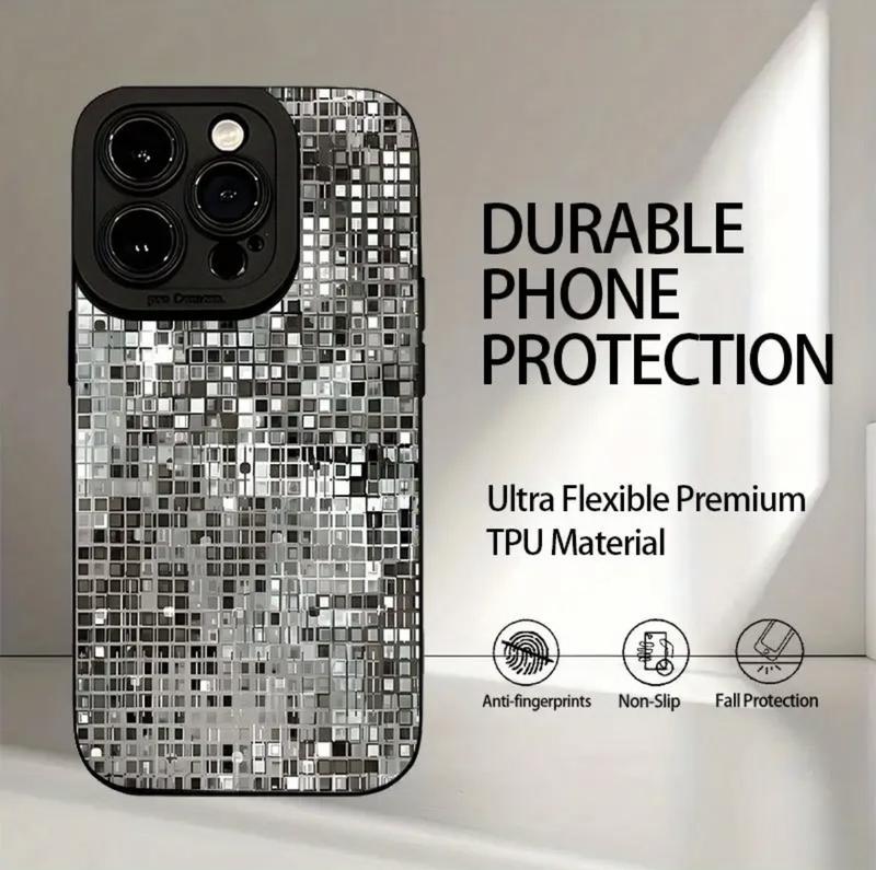 чохол для телефону з блискучим сріблястим дизайном, що має УФ-друк та 360-градусний повний захист, сумісний з моделями Iphone 15 Pro