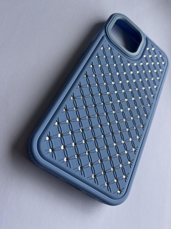 Чехол накладка ніжно блакитна з діамантовими вкрапленнями. Яскраво переливається на сонці. Має захисні бортики.Diamond case iphone 16 pro sky blue